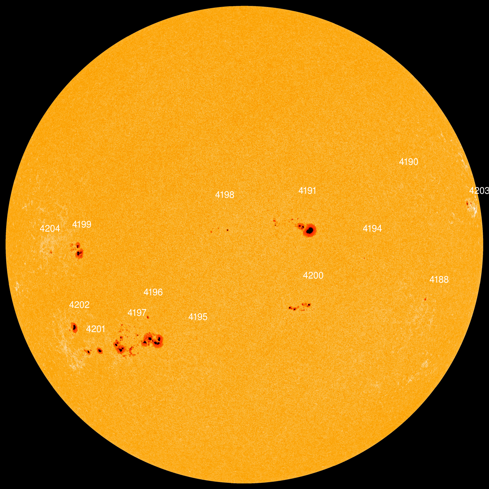 The sun can be observed through while light-filtered telescopes, hydrogen-alpha telescopes, and a Sun Funnel. Do not look directly at the sun without proper protection. On August 28, 2025, I had clear skies and an open horizon near sunset. With a Sun Funnel I was able to capture Sunspot #4197 and others.